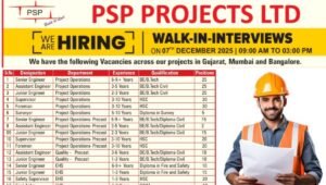 Recruitment Drive PSP Projects Ltd | Vacancies Gujarat, Mumbai & Bangalore location